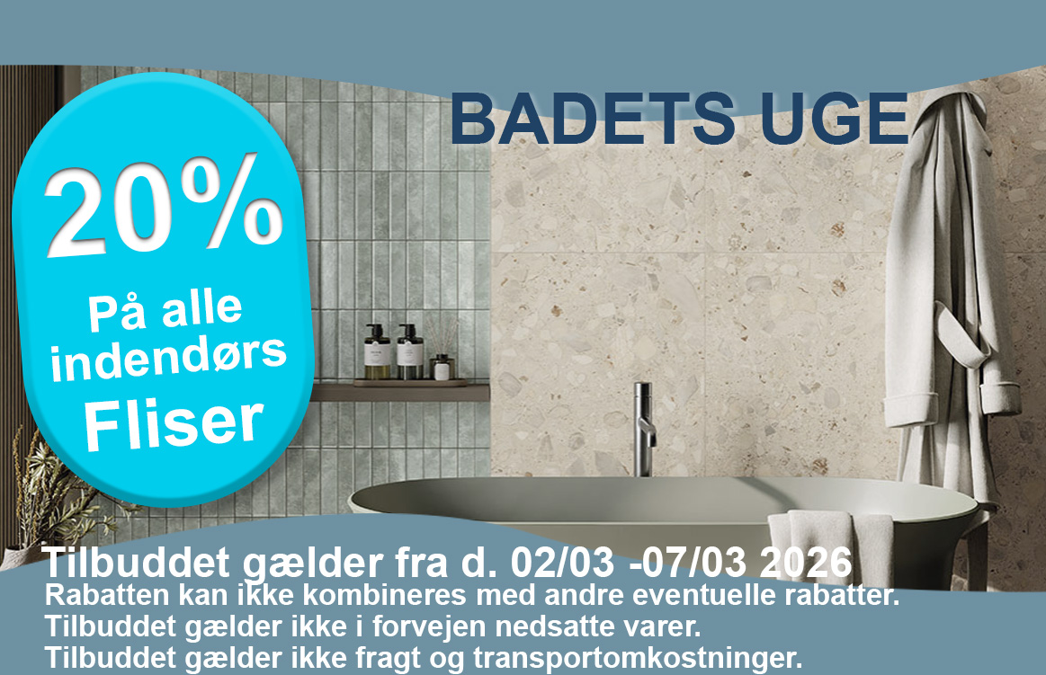 Mange af vores fliseserier fås som både indendørsfliser og som terrassefliser i 20 mm. Det er derfor muligt at skabe en forbindelse mellem dine indendørs- og udendørsarealer – samme fliser i køkken alrum og på terrasse. Hvis dettte tiltaler dig, så start med at se nærmere på vores udendørs terrassefliser her.