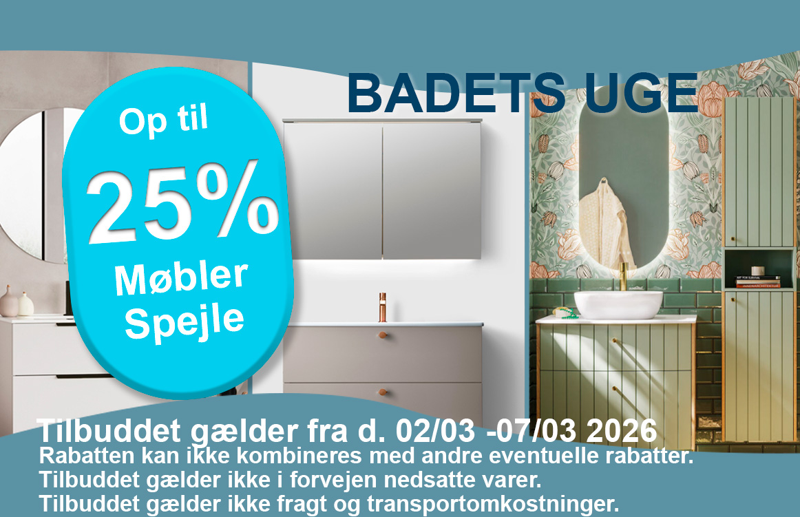 Da vi også sælger brusesæt, armatur til håndvask og badekar, badrumsmøbler, håndvaske og højskabe til badeværelser, samt bordplader til fritstående håndvask, porcelænshåndvaske, sisterneplade og køkkenborde m.m. er det altid muligt at skabe en rød tråd gennem din indretning af badeværelse, køkken og andre rum.