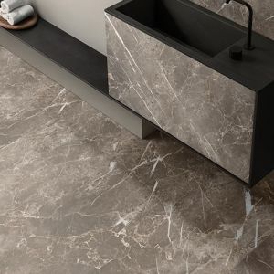 Vores fliser med marmor look er anvendelige på gulv og har derfor altid ”høj slidstyrke”.