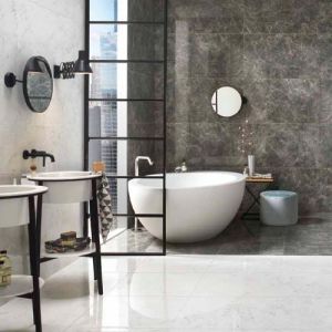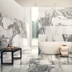Vores fliser med marmor look er anvendelige på gulv og har derfor altid ”høj slidstyrke”.