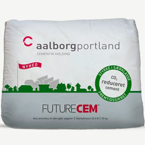 FUTURECEM er det nyeste produkt i porteføljen af pakkede cementer, og er baseret på omfattende forskning. Teknologien bag sikrer et reduceret CO2-aftryk på op mod 30 % uden at gå på kompromis med 28 døgns styrken. FUTURECEM er derfor velegnet til bl.a. fundamenter, gulve og vægge.