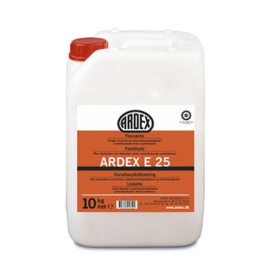 ARDEX E 25 er en lys rosa, kunstharpiksdispergeret blandevæske til cementbaserede mørtler, spartel-, udjævnings- og nivelleringsmasser.