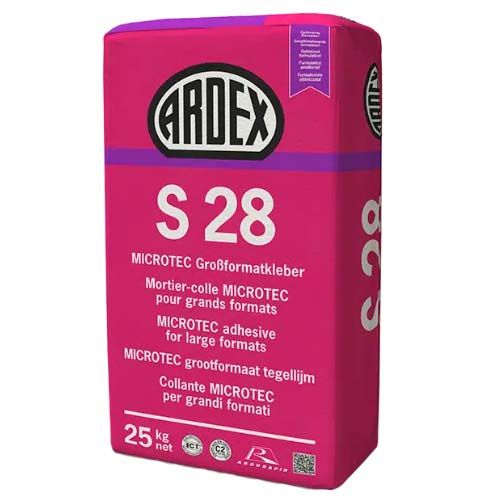 Ardex S 28 er en fliseklæb særligt egnet til storformatfliser og tynde fliser på fugtfølsomee underlag.