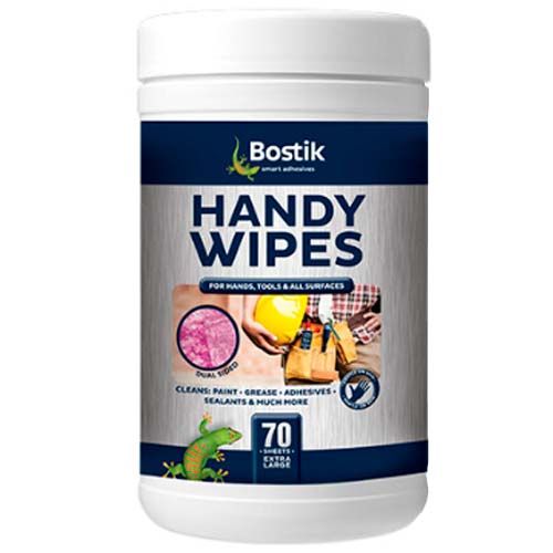 Bostik Handy Wipes er specielt udviklet til hurtigt og effektivt at fjerne fugemasse, tjære, snavs, fedt, olie, klæbemiddel, maling og blæk fra værktøj og udstyr.