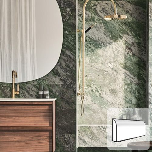 Bricmate Marmor fås som alm flise og som sokkelflise med facet overkant.