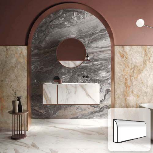 Sokkelfliser fra Cæsar har afrundet overkant, og giver det det sidste lækre finish på din flisegulv. Sokkelfliser anbefales især i vådrum, hvor der ikke er fliser på alle vægge.