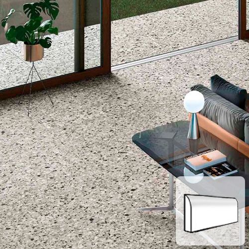 Le Ville flisen er en keramisk flise med grovkornet terrazzo look, som fås i både mat og blank overflade.