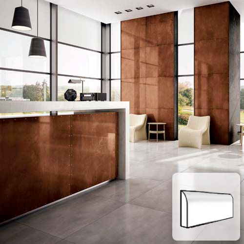 Casalgrande Steeltech sokkelfliser med afrundet overkant.