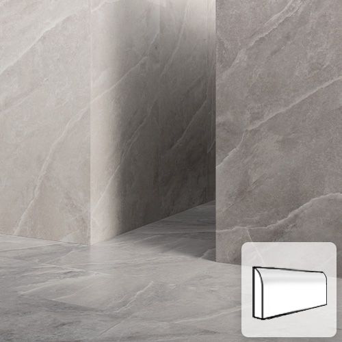 Supreme serien kommer som storformatfliser, alm. fliser og som sokkelfliser med afrundet overkant.