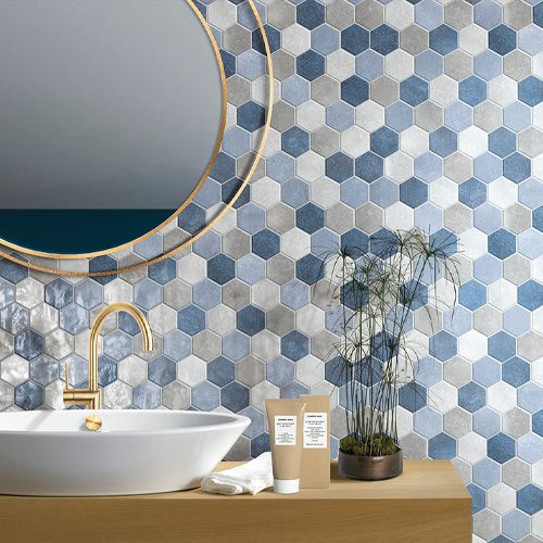 Denne sekskantede flise kommer som mosaik på net á 27x27 cm.