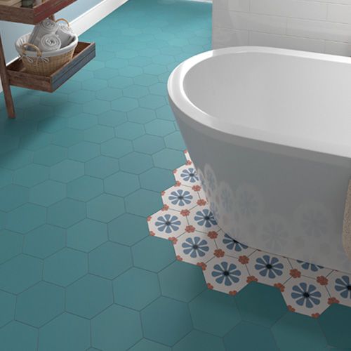 Køb Coimbra, hvis du vil have en rolig sekskantet gulv- og vægflise som også giver mulighed for kombination med mønstre.