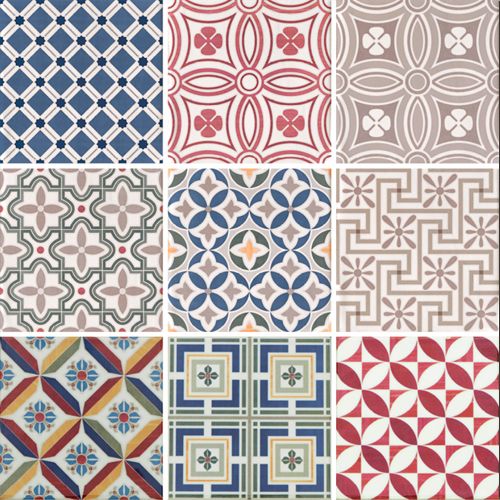 Bemærk: Fliserne kommer i kasser med blandede mønstre.