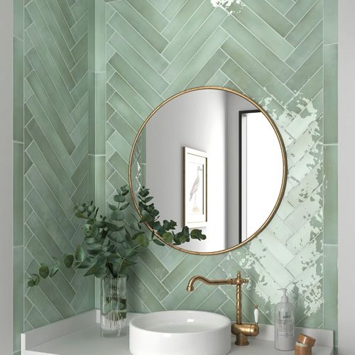 Farverne i disser fliser harmonerer med de dushede farvemætninger, som ofte anvendes andre steder i skandinaviske badeværelser og køkkener.