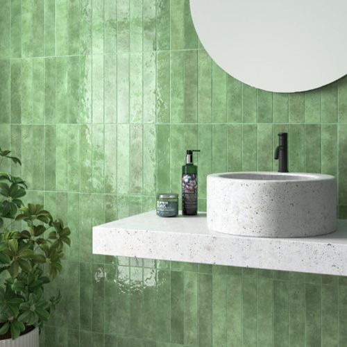 De aflange fliser i Menorca serien er skabt til sildebensfliser, og til den moderne effekt; at have opretstående stave på væggen, hvilket giver illusionen af at rummet virker højere.