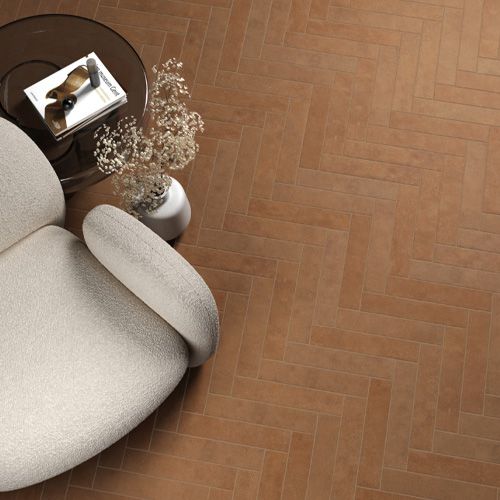Denne svagt changerende gulvklinke fås i 8 afdæmpede farver, og kommer i formater der kan lægges i sildebensmønster og andre forbandte mønstre.