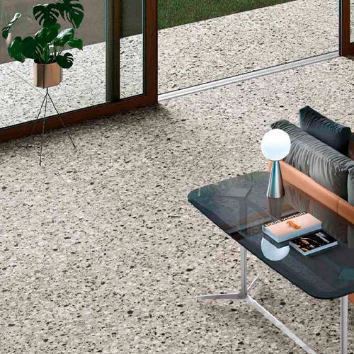 Le Ville flisen er en keramisk flise med grovkornet terrazzo look, som fås i både mat og blank overflade.