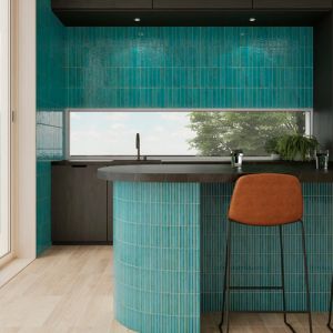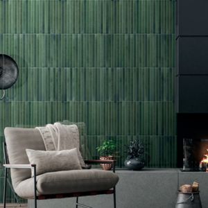 De grønne fliser, som changerer i toner på hver enkelt stav, kan medvirke til fantasifulde udtryk i din indretning.