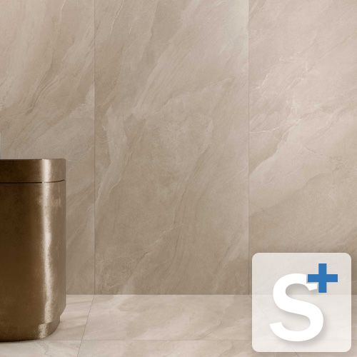 Slaten Stone er keramiske storformatfliser med smukke steneffekter af årer det gennemstrømmer de store flader. Fliserne kan anvendes i badeværelse, køkken, entré og bryggers samt udendørs på støbt underlag som f.eks. terrasse.