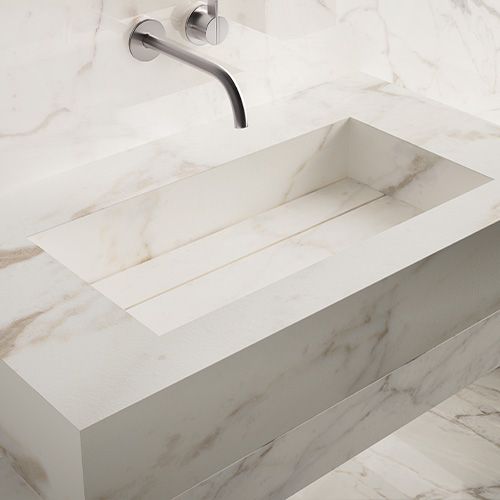 HÃ¥ndvasken er speciallavet af keramiske fliser fra Casalgrande's Marmoker serie.