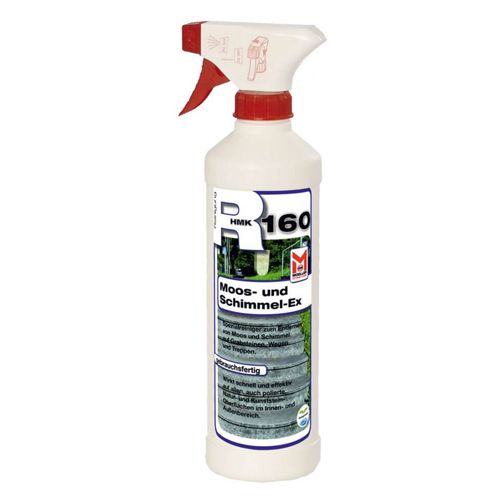 HMK R160 er en brugsklar spray på rengøringsmiddel til brug på mindre overflader. HMK R160 arbejder hurtigt for at fjerne og forhindre genvækst af mos, skimmelsvamp, svampe, lav og meldug fra trapper, stier, gravsten, vægge, havepynt osv. Polerede overflader beskadiges ikke. HMK R160 er også yderst effektiv til blegning af organiske pletter forårsaget af ting som kaffe, cola, rødvin, blomster, bær, frugt- og frugtjuice mm.