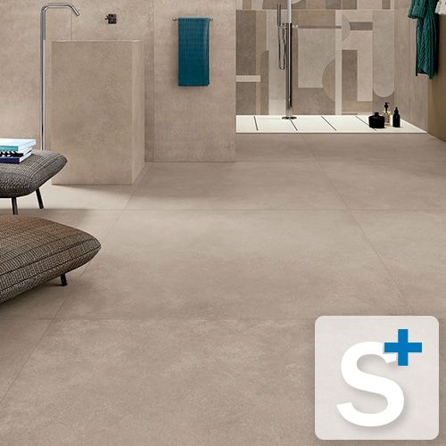 Flisen fås også som sokkelflise med afrundet overkant og som storformatflise.
