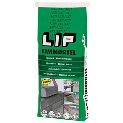 LIP Limmørtel er en cementbaseret tørmørtel Útilsat hæfteforbedrende additiver og velgraderet ovntørret kvartssand med en kornstørrelse på op til 0,5 mm.