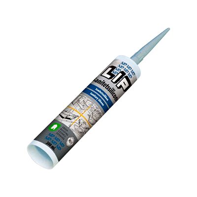 LIP Sanitetssilicone er en højelastisk alkoholbaseret Úsiliconefugemasse, der er særlig velegnet til tætning og fugning i køkken og badeværelset. LIP Sanitetssilicone er særlig velegnet til klinker, fliser, marmor, natursten og har en særdeles god vedhæftning til de fleste materialer, som f.eks. metal, mursten, keramik, kunststoffer, glas, PVC og behandlet træ. Misfarver ikke natursten og marmor.
