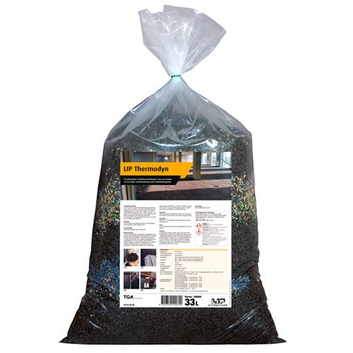 LIP Thermodyn er velegnet til opbygning af gulvkonstruktioner, hvor der ønskes lav vægt samt trinlydsdæmpning. LIP Thermodyn udlægges som almindeligt pudslag og når gulvet er tørt efter ca.1 døgn, påføres der evt en LIP gulvspartelmasse i f.eks. 10 mm lagtykkelse eller der klæbes fliser på direkte.