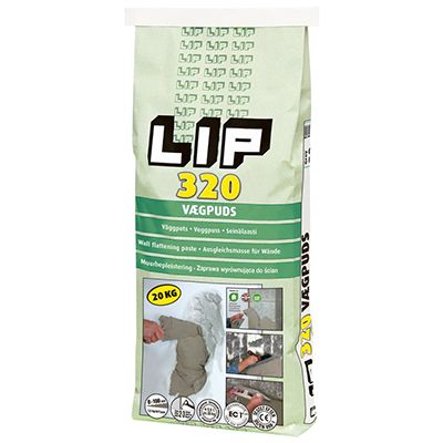 LIP 320 er en allround cementbaseret og hurtighærdende Úvægopretningsmasse, der anvendes til reparation, opretning og udspartling af huller og ujævnheder på murværk, råbeton, cement- og anhydritpudslag samt let- og gasÚbeton m.m.