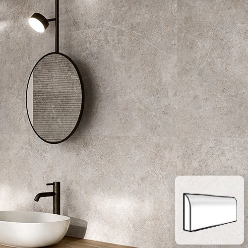 Fliserne fås som alm. flise, storformatflise og som sokkelflise med afrundet overkant.