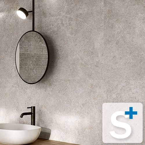 De lækre naturtro stenstrukturer kan svagt mærkes i overfladen på flisen.