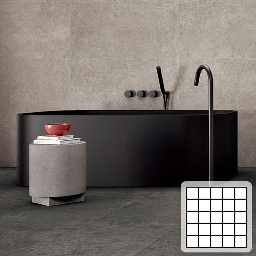 Lounge flisen fås både som storformatflise, mosaikker og som sokkelflise med afrundet overkant.