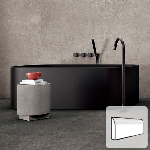 Lounge flisen fås både som storformatflise, mosaikker og som sokkelflise med afrundet overkant.