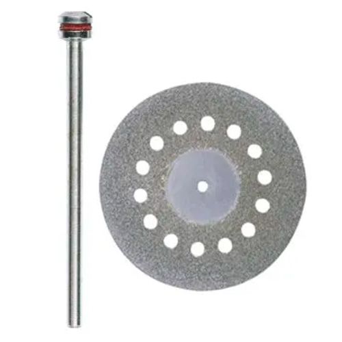 Diamantskiven monteres på vinkelboreren med monteringsstift. Den kommer derfor ud i det fri, og giver forøget skærepræcision.