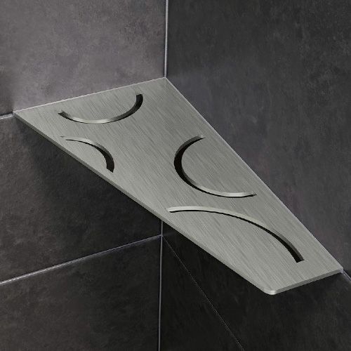Denne aflange hjørnehylde til shampoo i brusenichen er lavet i solidt rustfrit stål med børstet overflade.