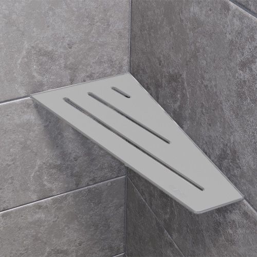 Denne aflange shampoohylde er laver i solid aluminium med strukturbelægning i lys grå. Hylden har mat overflade.