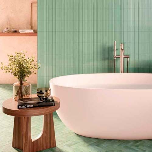 Mini Stripes kan udelukkende monteres på væg - i modsætning til resten af Mini serien, som også kan lægges på gulv i badeværelse og køkken m.m.