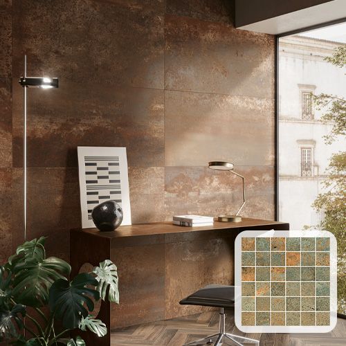 Costruire-flisen udtrykker materialerne på en intens og stemningsfuld facon. Moderne arkitektur, ler og metal, skaber uventede stilistiske crossovers og kombinationer og kontraster udtrykt i farver og strukturer. Blødheden af nystøbt cement og den ru, oprindelige charme ved rustende metal er inspirationen til denne rustikke flise fra Serenissima.