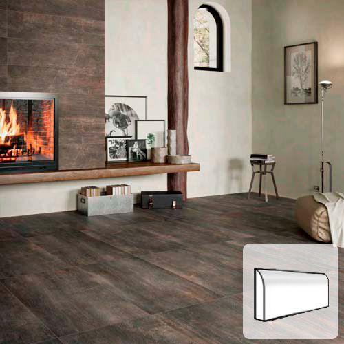 Fossil flisen fås også i blank overflade som sokkelflise med afrundet overkant.