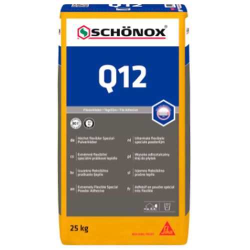 Schönox Q12 er en fiberforstærket fliseklæb til keramiske fliser af alle størrelser.