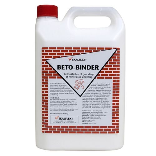 Skalflex Beto-Binder ensarter og forbedrer vedhæftning til stærkt sugende eller uens sugende underlag, samt øger styrken og elasticiteten af det påførte produkt.