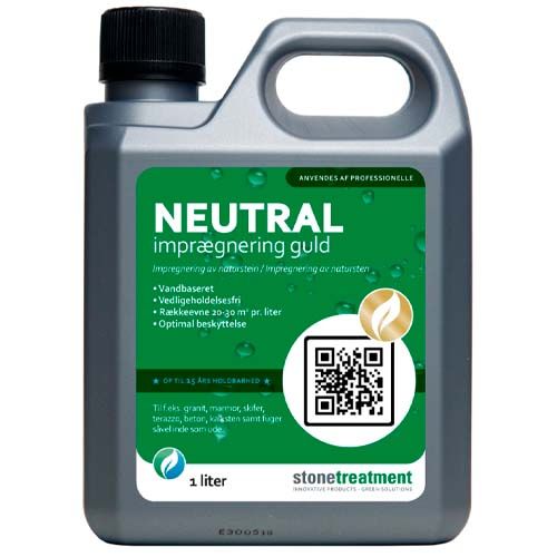 Vandbaseret neutral imprægnering af høj kvalitet og lang holdbarhed. Stonetreatment Neutral imprægnering bygger på fluoroacrylpolymer teknikken og giver naturstenen stor modstandsdygtighed overfor såvel olie som vandbårne forureninger, uden at stenens udseende forringes eller ændres.