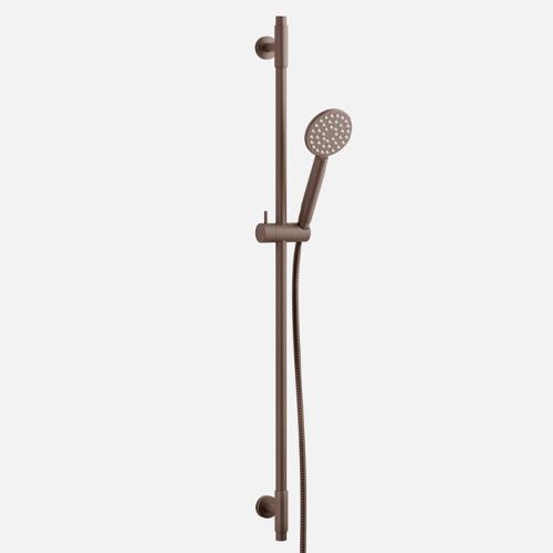 Brusesæt med stang, håndbruser, holder og slange i ægte bronze-overflade.