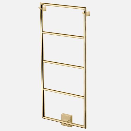 Håndklædetørreren har blank Honey Gold overflade, hivlket giver dig udseenet af ægte guld, men med en mere resistent overflade. Honey Gold patinerer ikke, på samme måde som messing.