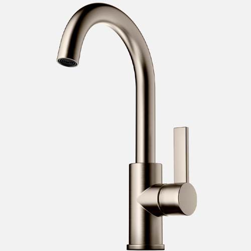 Tapwell ARM078 håndvaskarmatur i Brushed Platinum overflade til køkkenvask og fritstående bordvask i badeværelse.
