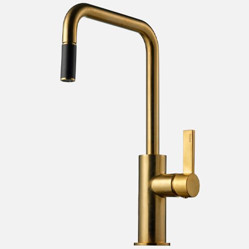 Brushed Honey Gold overflade er ekstraordinær for Tapwell, og fås udelukkende i denne model af køkkenarmatur.
