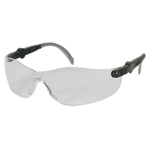 Sikkerhedsbrille med klar linse, justerbare stænger fremstillet af polycarbonat, godkendelse EN 166.