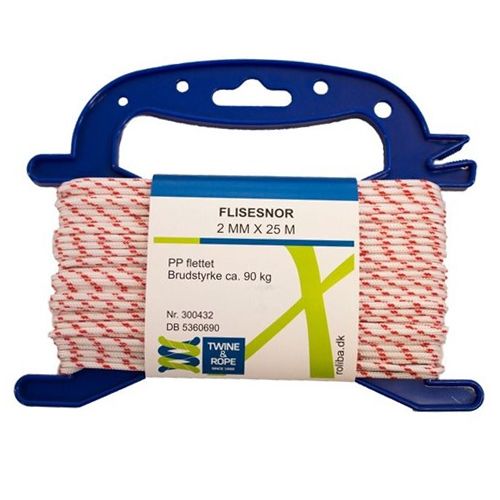 Flisesnor med hvid/rød nist og med hjerte er grundet dens materiale af flettet polypropylen, yderst velegnet som afstandssnor ved opsætning/lægning af fliser, klinker og natursten. Flisesnoren er desuden anvendelig som almindelig bindesnor til almene formål. Den flettet flisesnor med hjerte leveres på vindsel med håndtag.