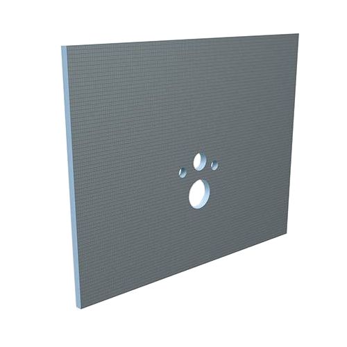 Wedi I-Board til væghængt toilet. Pladen måler 120x124,5x2 cm.