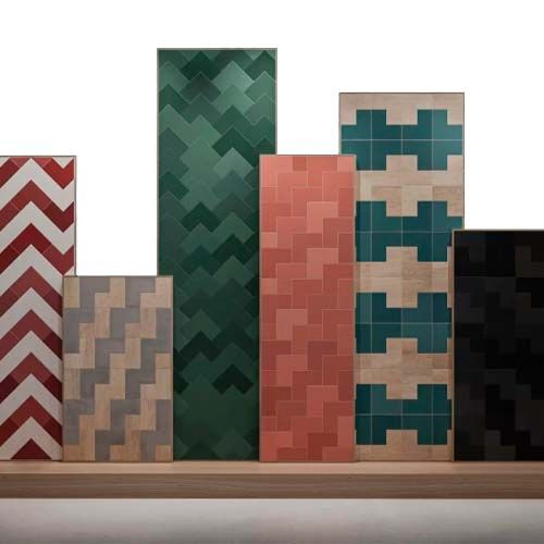Se billederne af de forskellige farver af Elle Floor flisen for at få et indtryk af, hvordan man kan lege med mønstre - selv hvis du vælger blot én farve.